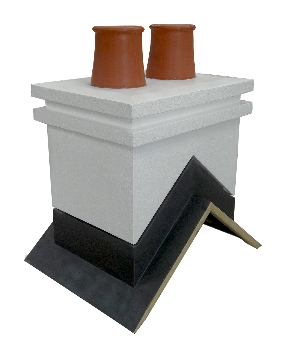 Quickstack - Light replica render chimneys are produced with a render texture and can be coloured to suit your on site  render materials .